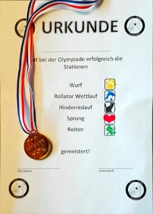 Urkunde und Medaille der Kinder-Olympiade